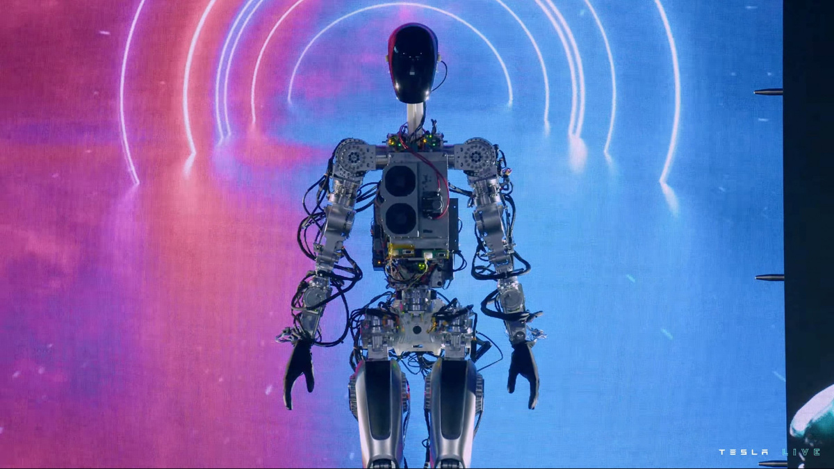 Компания Tesla в рамках своей презентации Tesla 2022 AI Day, представила прототип человекоподобного робота Optimus, об это лично на презентации рассказал гендиректор Tesla Илон Маск. В данном роботе задействованы датчики и технологии, которые задействованы в «автопилоте» Tesla. Первый прототип под кодовым именем Bumble C, не имеет внешней обшивки, но способен ходить и махать руками. По словам Илона Маска, эта версия робота впервые действует без поддержки, и в реальности она умеет гораздо больше. Также показали и второй прототип робота, который визуально близкий к серийному, ведь он облачён в корпус. Но к сожалению пока он не способен ходить, поэтому его продемонстрировали на подставке. Сам робот оснащен чипсетом SoC Tesla, модулями Wi-Fi и LTE, а также аккумулятором на 2,3 кВт/ч. Все движения робота руками обеспечивают 28 приводами по 11 осям. Встроенный алгоритм способен определить движения людей и воспроизвести их механизмами робота. Илон Маск называет данного робота самый важным про