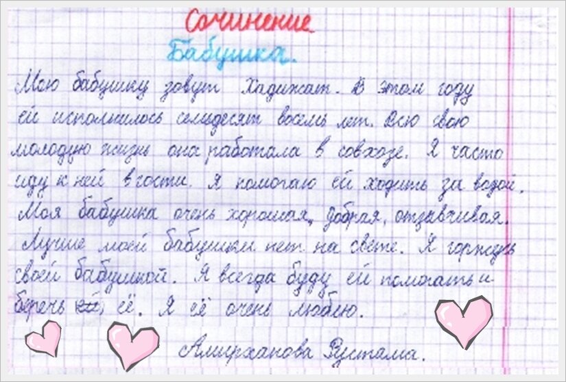 1 октября - это не просто первый день второго месяца осени. 1 октября в 1991 году был объявлен днем пожилых людей на международном уровне, а спустя ровного год "День пожилого человека" появился и в России. В связи с этим, хочу поздравить всех пожилых людей и пожелать здоровья, спокойствия, а также заботливых детей и внуков. Несмотря на все то, что сейчас происходит вокруг нас, предлагаю отвлечься и вспомнить про наших родителей, бабушек, дедушек, родственников, которым нужна поддержка, внимание и забота. И пока взрослые будут покупать тортики и готовить поздравления, дети готовят рисунки и трогательные сочинения. Давайте посмотрим на эти 6 детских сочинений, которые способны вызвать не только умиление, но и поднять настроение. 6 Сочинений про бабушек и дедушек Это сочинение я перечитывал несколько раз... Текст, словно машина времени, переносит меня в далекое прошлое, которое осталось лишь в воспоминаниях. Вот тут ребенок решил немного пожаловаться :) Но с твердой уверенностью могу сказ