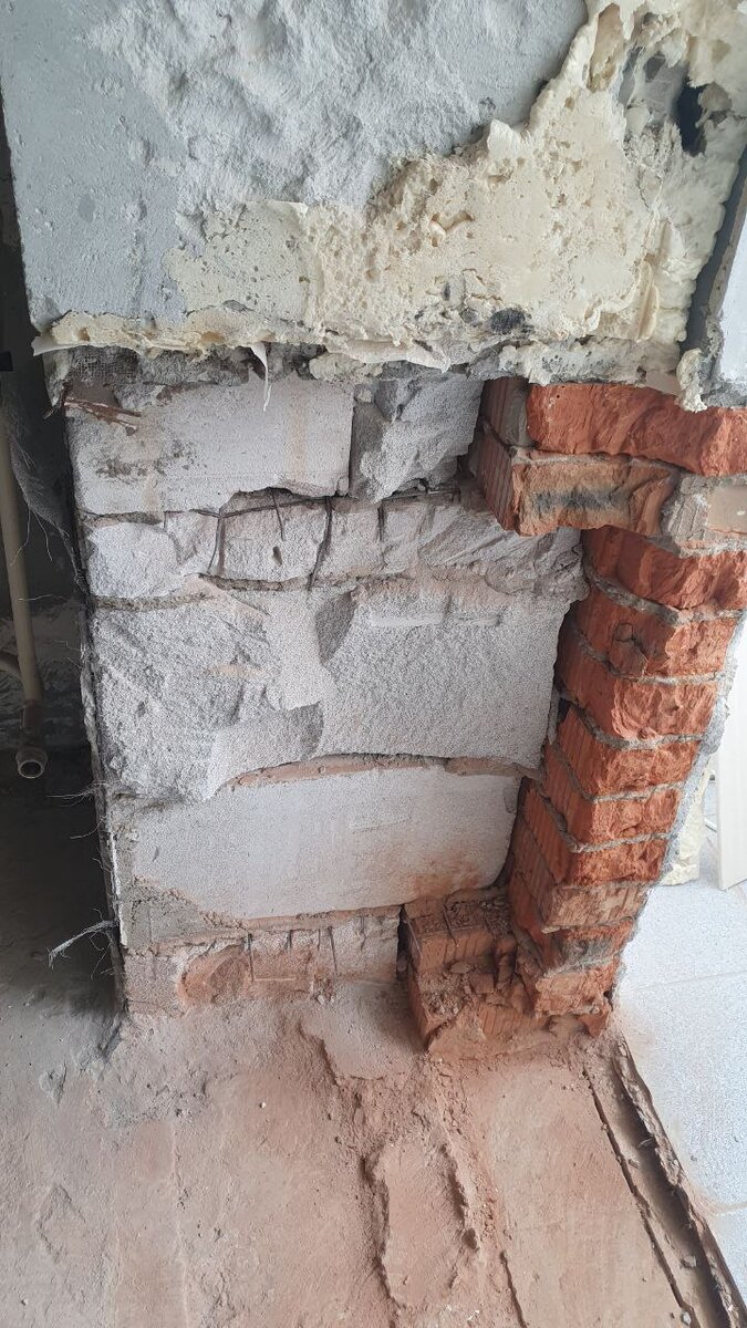 То, что видите на фото, часто встречаю на объектах, особенно во вторичках. При демонтажных работах осыпались крупные куски блоков, кирпичей и прочего. Ничего страшного в этом нет. Восстанавливается не сложно. Главное найти нужное. Ниже собрал примеры таких решений для вас. 1. ЕСЛИ ДО 5 СМ ПЕРЕПАД-ВЫРАВНИВАЕМ ШТУКАТУРКОЙ. Здесь все просто! Если дефекты имеют отклонения не больше 50 мм, то штукатурный слой полностью их перекроет. Дополнительно рекомендуется локально уложить сетку в слой. Фоточку прикладываю. 2. ЕСЛИ ПЕРЕПАД БОЛЕЕ 50 ММ - ВЫРАВНИВАЕМ БЛОКОМ Идеальное решение, если сколы как в сообщении выше. Берем блок (идеально подходит газоблок, 50-75-100 мм. Легко подрезается), и выкладываем вровень с основной плоскостью. Далее стыки проклеиваем сеткой (пластик), и штукатурим. Готово 👍 п.с. не нашел фоточку... обязательно сфотаю и покажу. Пока эскиз) простите. 3. ЕСЛИ ПОВРЕЖДЕНИЯ ЛОКАЛЬНЫЕ-ИСПОЛЬЗУЙТЕ ПЕНУ Пеной конечно нельзя выравнивать целые стены по 20-30 квадратов 🤣 Она иде