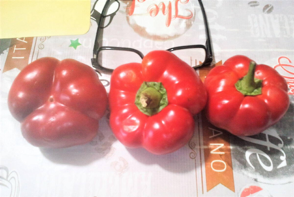 Сама себе с гогошарами надоела. С года прошлого настрочила кучу публикаций о маринованных и квашеных с капустой. Не все читали, разумеется, в комментариях периодически спрашивают, что это за "фрукт" неизвестный - гогошары? Поскольку только что два дня посвятила общению с ним, опять напишу. Гогошары - вид сладкого перца. Круглые, более острые и мясистые. Гораздо вкуснее прототипа - самого перца, который часто называют болгарским. Вот они. Очки лежат для определения масштаба, но здесь средние экземпляры. А это - мешок 15 кг, один из двух, которые муж привёз на мою шею. Рассчитывала на меньшее количество. Листайте. Обычно маринованные гогошары - блюдо праздничное. Когда-то я закручивала всего-навсего 5 кг. Сейчас плачемся, что жизнь тяжёлая, цены дикие, а гогошаров закупили аж 30 кг. Почему? Да очень просто. Раньше помидоры стоили 3 лея, гогошары - 40. Естественно, дорого, покупали по минимуму. Сейчас их продают за те же 40-45 леев, зато помидоры - 10-20. Это на местном рынке. Муж куп