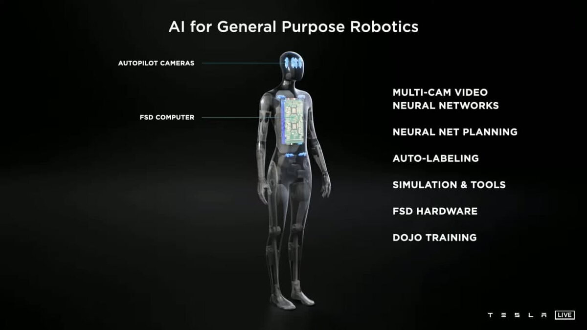 Робот способен двигать всеми пальцами независимо, в пальцах расположены датчики для обратной связи и контроля силы сжатия. Робот сможет отслеживать, что именно он держит. Руки имеют 27 степеней свободы, тело — более 200. При этом робот весит около 73 кг и потребляет 100 Вт в сидячем положении и 500 Вт при ходьбе. Сердцем Optimus является однокристальная система, разработанная Tesla. Он получил модули Wi-Fi и LTE для постоянного подключения к Сети. Аккумуляторная батарея емкостью 2,4 кВт•ч тоже разработана Tesla, она встроена в грудную клетку Optimus. Ожидается, что заряда будет хватать на полный рабочий день, хотя на данном этапе неясно, какой объём работы сможет проделать Optimus. Илон Маск признал, что Tesla предстоит еще много работы, чтобы улучшить Optimus и доработать его. Тем не менее генеральный директор Tesla с энтузиазмом относится к этому потенциалу: «Наша цель — как можно скорее создать полезного робота-гуманоида. Мы планируем производить роботов в больших объемах, с низкой