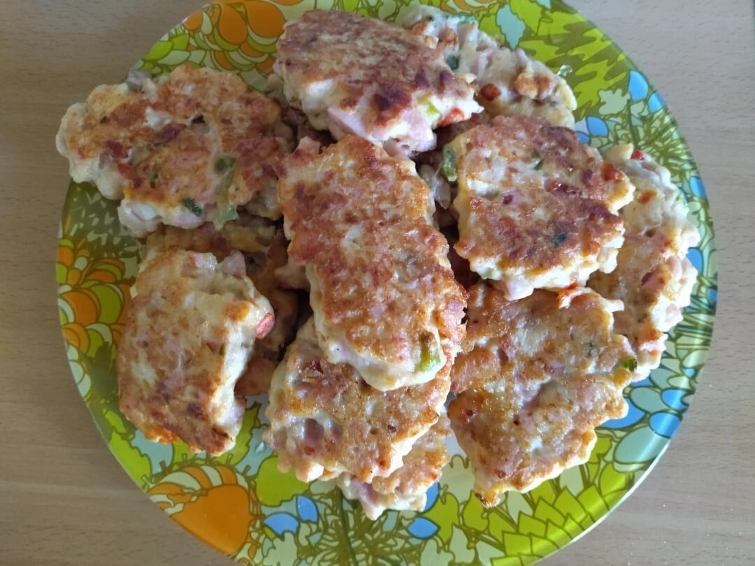 Провожу эксперимент и готовлю 9 блюд из одной курицы. Предыдущий пост здесь А самое начало здесь Первое блюдо, которое я решила приготовить - это рубленные котлетки. Немного адаптировала рецепт автора: в связи с тем, что помидор у меня, было совсем мало, добавила еще и перец. А к сметане добавила майонез. Сыр колбасный потерла. И, как и говорила, готовлю двойную порцию. И вот результат на фото😊 ❗ У меня из двойного количества ингредиентов вышло 14 котлет, тогда как у автора из одинарного 10🤔 Возможно, они у меня просто по размеру больше 🤷♀️ Котлет хватило на три полноценных ужина и пару перекусов. Идем дальше😉