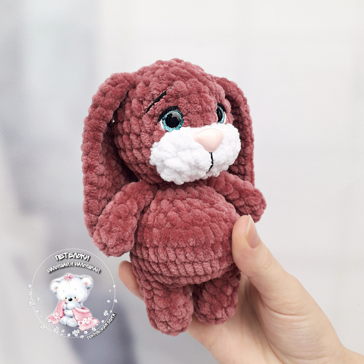 Это, как в песне: "Девушки бывают разные чёрные, белые, красные...", так и игрушки все разные – из плюша или из хлопка, маленькие или большие, худенькие или толстенькие. А уж про цвет можно вообще не говорить. Сколько схем и описаний просмотрено, прочитано и сохранено не сосчитать. Понаблюдав за мной, ещё года два назад, муж меня спросил, почему я сама не составляю схемы? Я отвечала, что ещё не готова; ещё не уверена в себе; многого не знаю. И кто бы мог подумать, что я "созрею". Буквально за пару часов, случайно создался такой зайка, по моей собственной схеме! Ура! Я сделала это! Маленький, пухленький, практически весь цельновязаный (пришита только мордашка; верхние лапки и ушки ввязаны). Всё, как я люблю! 📏Ростик 13 см. Ушки 10 см. 👀Глазки и носик на безопасном креплении 🐾Ручки и ушки ввязаны. Ножки, тело, хвостик и голова – цельновязаные ✂️100% ручная работа 🌿Материал гипоаллергенный ☁️Наполнитель - холлофайбер 💞С любовью в каждой петелке 📌МК Теперь надо придумать, как его