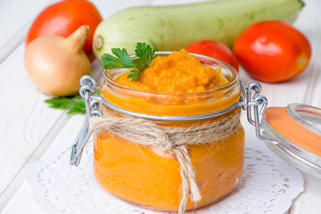 Ингредиенты: Первым делом нужно очистить все овощи от кожуры. Далее разрезать на небольшие кусочки все овощи, а морковь натереть на крупной терке. Возьмите толстостенную кастрюлю, но лучше подойдет казан. В разогретую кастрюлю налейте подсолнечное масло и начните обжаривать лук с морковью периодически помешивая примерно 10 минут. Пока овощи обжариваются подготовьте кабачки. Лучше всего нарезать кабачок на небольшие кусочки. Спустя 10 минут как овощи протушились к ним нужно добавить соль, сахар и нарезанные кабачки. Все тщательно перемешайте несколько раз. С этого момента овощи тушите на среднем огне примерно 30-35 минут. После того как прошло 30-35 минут к овощам добавьте черный молотый перец и томатную пасту. Ёще раз все тщательно перемешайте и тушите еще минут 10. Далее добавьте к овощам 9% уксус. На данном этапе попробуйте икру по вкусу и определите чего не хватает, доведите икру до того вкуса, который вы бы хотели. После добавления уксуса проварите овощи примерно 5 минут. Горячие о