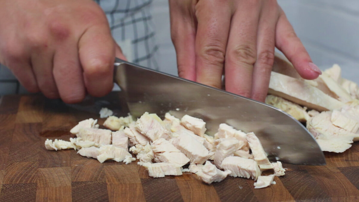 Обалденный салат с жареными кабачками, курицей и яичными блинчиками