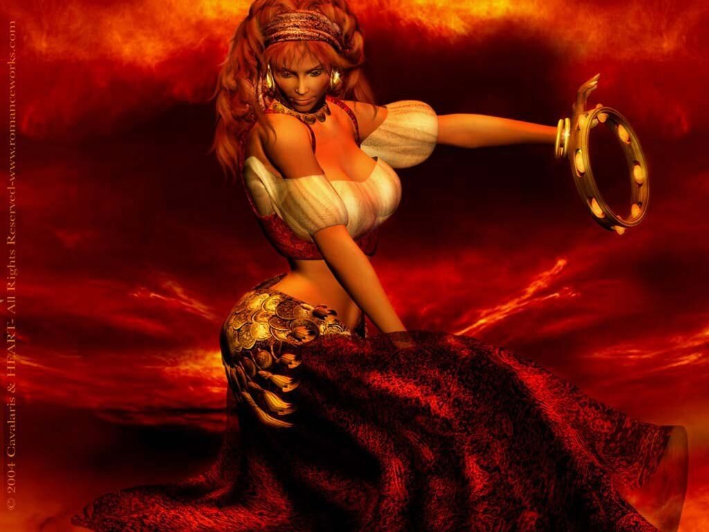 Яркие языки пламени поднимались все выше в звездное небо. Мелькали длинные юбки в такт жаркому огню. Зажигал народ цыганский, танцами и песнями богов восхваляя да судьбу свою кочевую проклиная. И радовался чему–то. Наверное, тому, что волей вольной ромалэ обладали и свободными на свет божий рождались.
