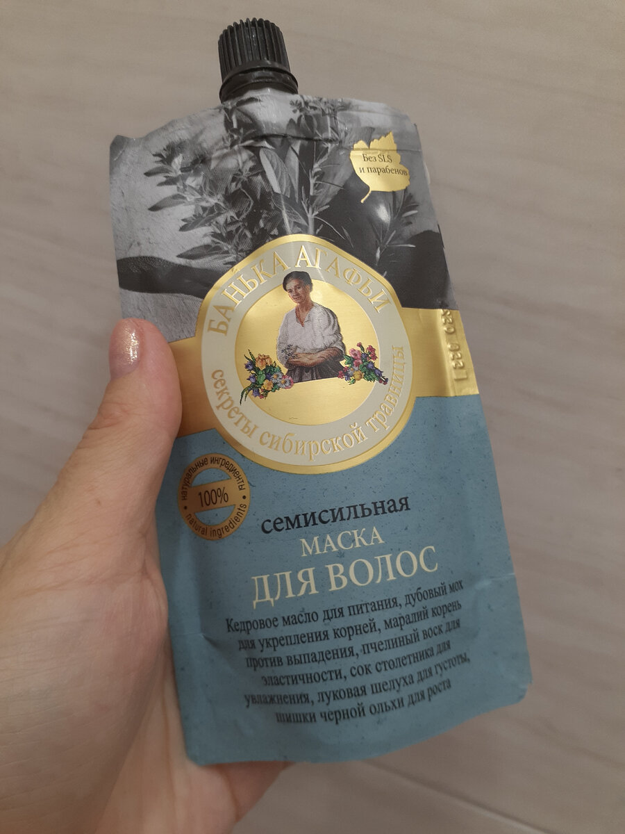 Приветствую вас на моём канале! Всем доброго дня и отличного настроения! Не так давно у меня вышли две статьи, в которых, я делала обзор на продукцию "Бабушки Агафьи", широкий ассортимент её представлен в МагнитКосметик, ссылку прикреплю ниже ⬇️ https://dzen.ru/a/Yy12oWg8qkr7MmZz ⬇️ https://dzen.ru/a/YyN1Cny1ijWS9S7O Как я и обещала, поделюсь своим мнением с вами. Купила ради интереса, маску для волос. Семисильная маска для волос. Маска на основе целебных натуральных компонентов, щедро питает и увлажняет кожу головы, укрепляет корни и стимулирует рост волос. Объем 100 мл. Скажу честно, с сомнением покупала эту маску, возникло не доверие из-за цены, достаточно доступная, не стоит и ста рублей. Я прочитала описание и решила попробовать. Ну что ж, мне понравилась. Маска лёгкая, без утяжеления волос, после волосы легко расчесываются и становятся шелковистыми. Я была удивлена, так как покупаю маски известных брендов и результат тот же, но даже после их использования, мои волосы не так легк