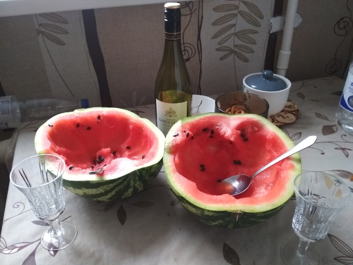 Обожаю незваных гостей, потому что к их приходу не надо готовиться, всегда есть отмазка «мы вас не ждали» и возможность блеснуть приготовлением какого-нибудь быстрого фирменного блюда, типа шарлотки, салата из кабачковой икры с луком, жареной картошки с грибами, существующими в морозильнике в состоянии почти полной готовности. Да просто чай попить в приятной компании и то хорошо! С пастилой. Полакомиться арбузом и фруктами— тоже тема.