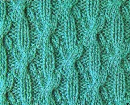 5-й р.: * перекрестить 6 п. направо (оставить 3 п. на вспом. спице за работой, 3 лиц. и провязать петли со вспом. спицы лиц.), 2 изн., 2 лиц., 2 изн., повторять от *.