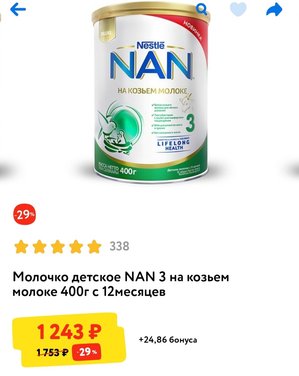 Так сложилось, что с рождения малыш на искусственном питании. Молока у меня не было. До года кушал Similac, были и запоры по 3 дня, но без аллергии. Пока не ввела прикорм и кисломолочку. Затем стул наладился и был стабильно каждый день. После года решила попробовать что то другое. Давно засматривалась на детскую смесь с козьим🐐 молоком, ведь оно легче усваивается и переваривается, полезнее коровьего. У NAN появилась такая новинка. В детском мире цена 1200-1300 руб. Не так уж дёшево за маленькую банку. Сыну исполнился годик и можно переходить на 3 номер, он рекомендован с 12-18 месяцев. Упаковка с молочком - металлическая банка, 400 грамм, с пластиковой крышкой. Такая дозировка банки самая удобная, так как открытая смесь хранится по условиям не более 3 недель. Т.к.это уже не основная еда, расход у нас не великий. Большим плюсом является то, что - ложечка🥄 не лежит в смеси, её можно положить сверху на специальный выступ. Для меня это важно, потому как лишний раз лезть руками в банку