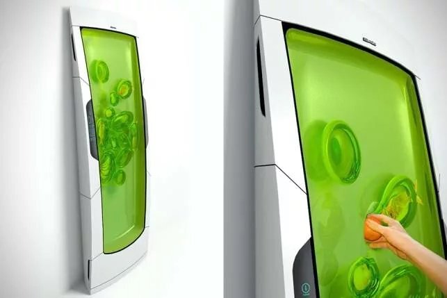 Российский дизайнер предложил концепцию холодильника, названного "Bio Robot Refrigerator", который охлаждает еду с помощью биополимерного геля. В нем нет полок, отделений и дверей – вы просто вставляете еду в гель.