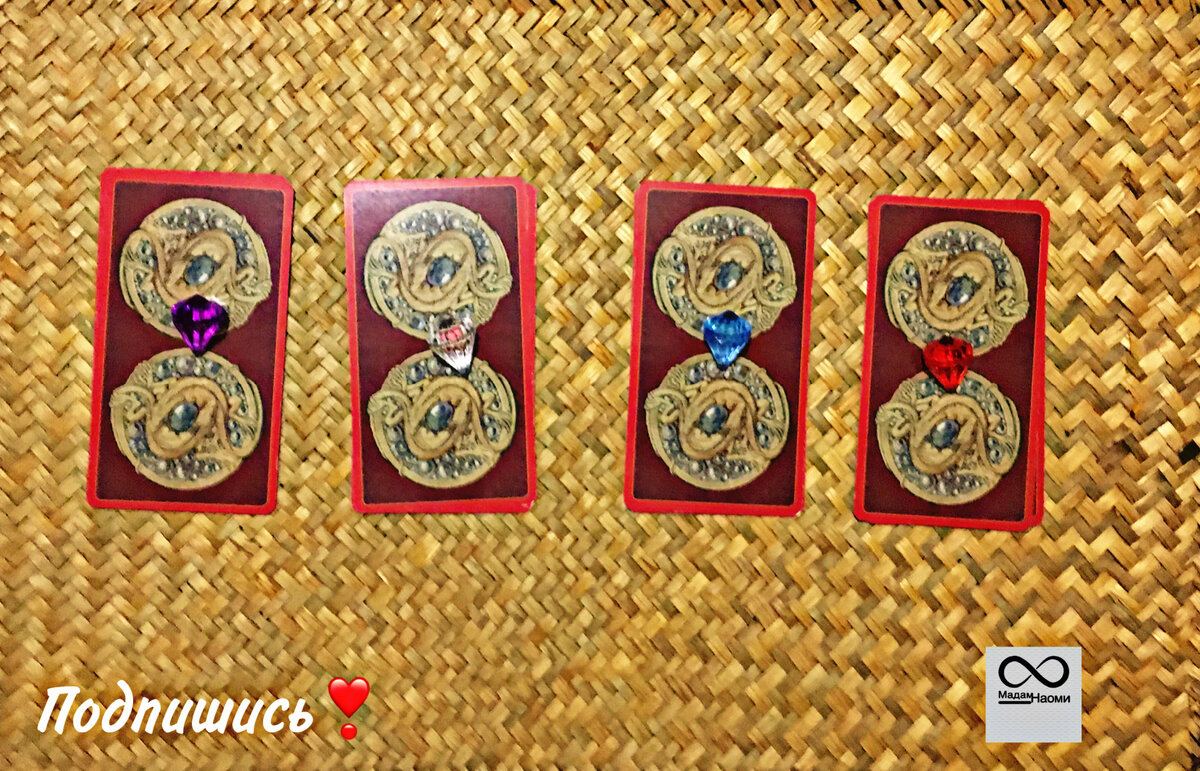 Перед вами четыре варианта. В каждом по три карты. Мы увидим состояние человека, и его чувства к вам. Так же посмотрим, что вас связывает, что бы вы могли понять, ваш это вариант или нет. Смело загадывайте несколько вариантов. Уверенна у каждой из вас не один поклонник. А я с удовольствием приступаю к трактовке.