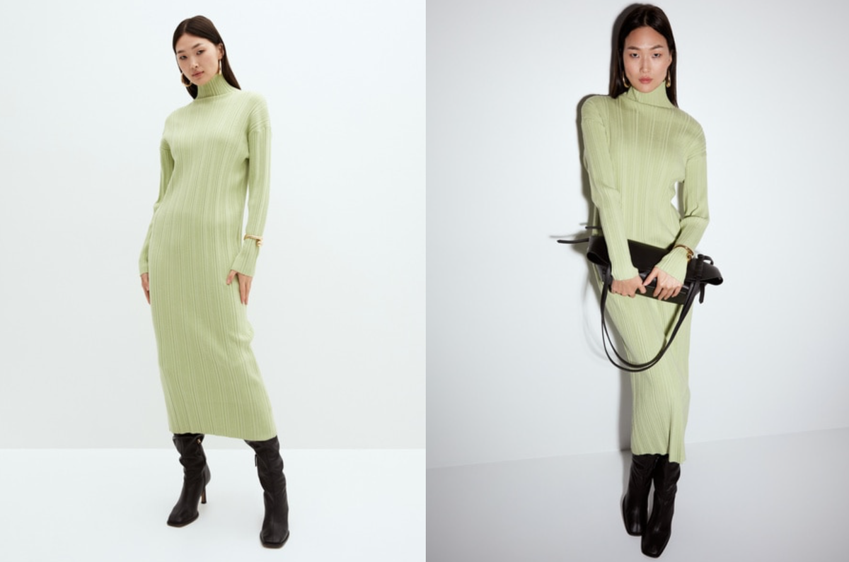 Начнем с самого популярного варианта осеннего платья — конечно же, это платье-свитер! В нем тепло, удобно, его легко сочетать с другими вещами из твоего гардероба, оно подходит почти под любую обувь и аксессуары. Такой вариант уместен для любого случая: от работы и похода по магазинам до свидания или посещения театра. Но если платье-свитер кажется слишком банальным, то есть простое решение — выберете яркий необычный цвет! Вот, например, салатовый — в нем точно не будешь выглядеть серой мышью, при этом тепло и удобство гарантированы!