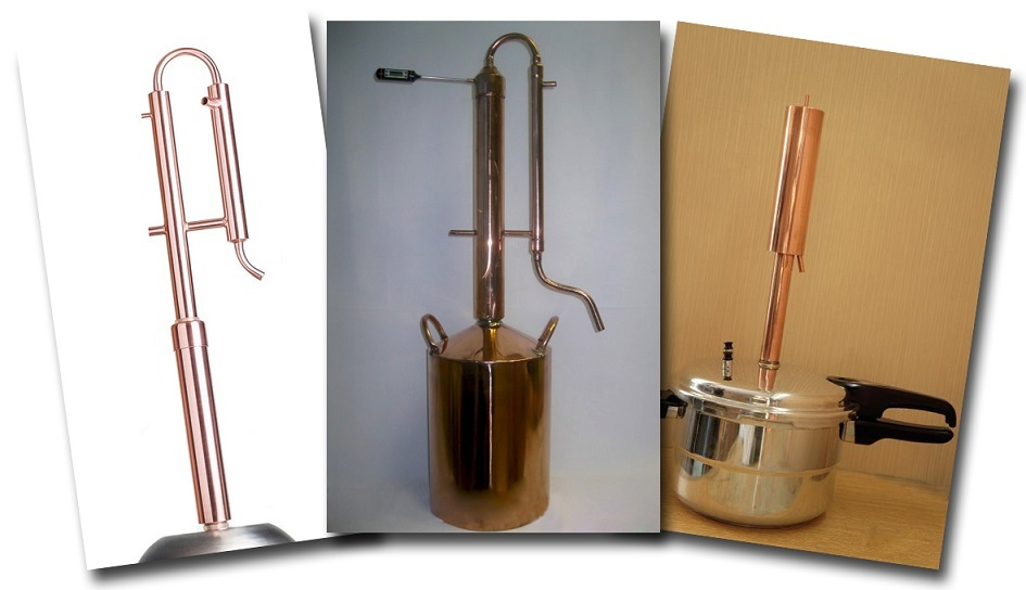 Все представленные на рынке аппараты можно разделить на две группы- это дистилляторы (самогонные аппараты) и ректификационные колонны. Дистилляторы имеют многовековую историю. В них спиртосодержащая жидкость нагревается до температуры кипения спирта , затем пары охлаждаются в холодильнике. При этом необходимо точно поддерживать нужную температуру, если она превышена, то более тяжелые сивушные масла «хвосты» попадают в готовый продукт и самогон может получиться мутный с неприятным запахом.
