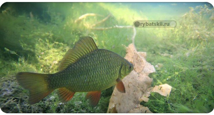 - Плотва. Любит прятаться под палками, брёвнами, камнями и в ямах. Для ловли лучше использовать прикормку и животные насадки – червь, опарыш и другие.