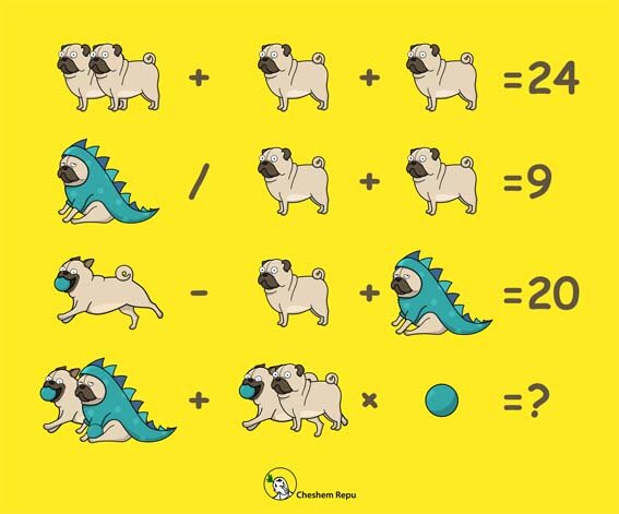 Дорогой читатель, мы, конечно, очень любим математику и цифры, но думаем, что считать мопсов, мячики и драконов намного веселее. К тому же, такие головоломки, помимо математических навыков, тренируют наблюдательность. А если задание понравится — поразгадывайте другие наши головоломки, где нужно считать предметы. Ну же! Вперед! Искать закономерности и причинно-следственные связи. Задание Решите задачу с несколькими неизвестными Для просмотра решения пролистните картинку, размещенную ниже Когда Вы ставите лайк и комментируете, мы понимаем, что задание Вам нравится. Это помогает нам придумывать только интересные головоломки. Плодотворного дня и хорошего настроения! Все иллюстрации к статье созданы автором, источник изображений — pixabay.com