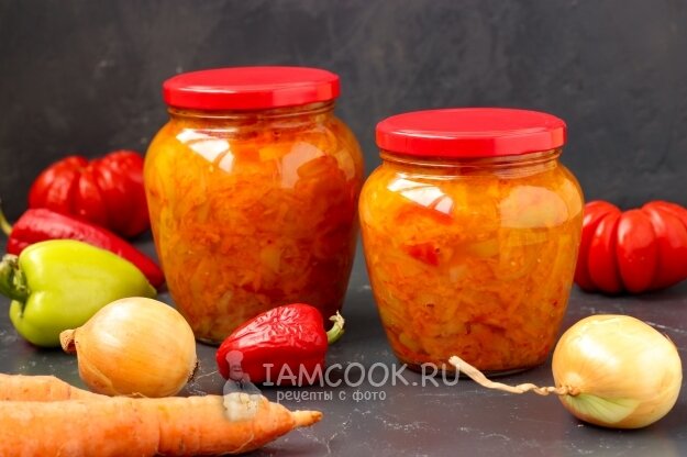Очень вкусная заготовочка из сезонных овощей, которую можно подать к любому основному блюду и даже на праздничный Новогодний / Рождественский стол зимой. Ингредиенты: Готовим: 1. Тертую морковь выложить в кастрюльку, добавить воду и растительное масло. Тушить около 20 минут под крышкой на маленьком огне. 2. Добавить лук, порезанный полукольцами. Тушить помешивая еще 20 минут. 3. Далее добавить порезанный сладкий перец. Продолжить тушить еще 20 минут. 4. Томаты прокрутить в блендере с сахаром, солью и уксусом. Отправить в кастрюлю к овощами. Тушить все вместе еще 15-20 минут. 5. Стерилизовать банки на пару, крышки ошпарить кипятком. Готовый салат уложить в банки и закрутить. Затем перевернуть и укрыть одеялом до полного остывания. 📌 Полная версия рецепта, отзывы о рецепте на нашем сайте 📌 Ещё больше рецептов салатов с морковью на зиму тут