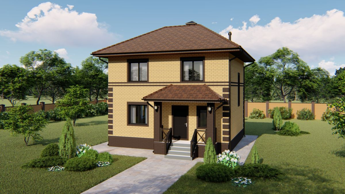 Если вы находитесь в поисках простого двухэтажного дома средней площадью от 100 до 120 кв. м, то представленные варианты отлично подходят под ваши параметры. Все проекты подразумевают типовую планировку, простую прямоугольную или квадратную форму с возможными дополнениями в виде эркера. Несущие стены подразумеваются в исполнении из газосиликатных (газобетонных блоков), но можно заменить на другой материал. Фасад дома облицован керамическим кирпичом. 1. Проект дома 1-070 Проект двухэтажного дома 9х9 м, общей площадью 102 кв.м с гардеробной, котельной, совмещенной кухней-гостиной и тремя спальными комнатами. >> Планировка проекта дома 1-069 _________________________________________________________ 2. Проект дома 1-070 Проект двухэтажного дома в классическом стиле 10х9 м, площадью 102 кв.м с тремя спальными комнатами, кабинетом, гардеробной и кухней-гостиной с камином. >> Планировка проекта дома 1-070 _________________________________________________________ 3. Проект дома 1-042 Проект дв