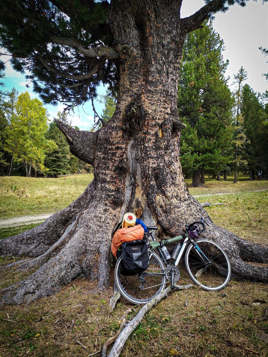 Вчера до вершины перевала я так и не добрался, меня накрыла темнота. Я нашёл уютное местечко под тремя облетающими берёзами и решил уже заночевать. Мне навстречу пронеслись три стада: сначала пугливые яки, потом прыткие кони, и за ними лениво перебирали копытами быки и коровы. В стороне за отдельным забором лаяли маралы. Я был спокоен, поужинал и спокойно уснул. Но ночью меня разбудила дрожащая почва и топот копыт. Я не знаю, как все эти животные видят в темноте, что всполошило их, но шансы быть раздавленным копытами хотелось свести к нулю. Я выскочил из палатки с фонарём, вскрикивал и громко хлопал в ладоши. Животные замерли. Из темноты светились лишь множества глаз. Потом они недовольно начали галдеть, видимо обсуждая, как "это" здесь оказалось.. В общем, попытки погарцевать ночью предпринимались ещё несколько раз. Помимо этого из темноты кто-то непрерывно сопел, мычал, лаял и аукал. Лишь к утру Морфей всё же одолел страх и пару часов ближе к рассвету я вздремнул. До вершины пе