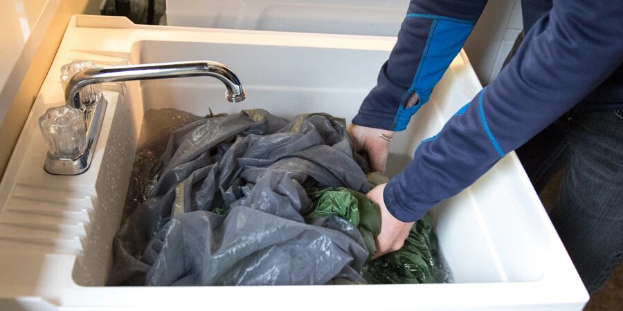 Вполне ожидаемо после выходных, проведенных на природе, вернуться домой с пыльной грязной палаткой. Но если палатка сильно загрязняется во время пребывания на природе, то вы можете заметить пятна на тенте, неприятные запахи или обнаружить проблемы с молнией. Чистка тента палатки поможет избавиться от этих проблем, и она не очень сложна. Вот необходимые шаги: 1. Соберите всё необходимое для чистки в одном месте: вам понадобятся вода, мыло, средство для чистки тента палатки, тряпочка или губка и большой таз или ванна. 2. Счистите песок щеткой и вытряхните его из палатки: так вы избавитесь от песка и засохшей грязи. Вы также можете аккуратно вымести или пропылесосить палатку изнутри, когда она установлена. 3. Сначала очистите от видимых пятен, потом погружайте в воду целиком: вначале очистите пятна на сухом тенте, потом погрузите тент палатки в мыльную воду. Для очистки очень сильных загрязнений, следуйте нашим инструкциям по глубокой очистке тента палатки. 4. Опол