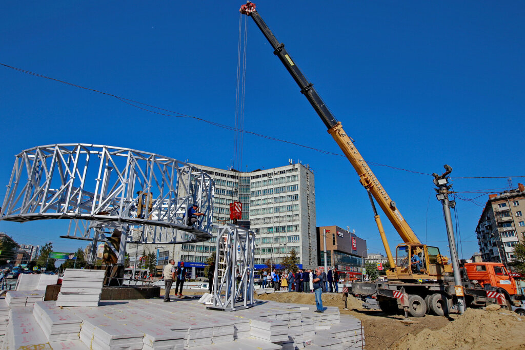 Монтаж стелы трудовой доблести на площади Калинина. Фото: Павел Комаров, nsknews.info