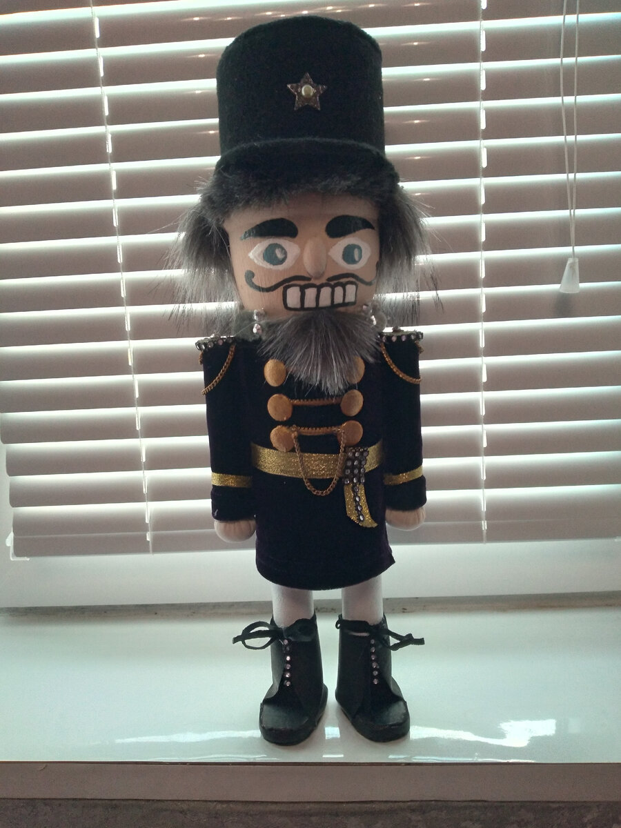 Всем крымский приветик.После дневного вчерашнего ливня,сегодня у нас+26.Купальный сезон на море продолжается,вода в море+23.Это достаточно комфортная температура для купания.А сегодня покажу Щелкунчика,друга вчерашней гномички Мии.Он был создан вместе с Мией для атрибута под елку,вместо деда Мороза и снегурки.Деда Мороза делала внучкам под елку в прошлом году из ваты.Покажу в следующий раз.Может сделаю снегурку внучкам в этом году.Ну вот и Щелкунчик... Сапожки сделаны из кожи.А мундир из бархата.На фото не видно, но мундир чернильного цвета,переливается,бархат итальянский и очень классный.Шляпа из фетра.Всегда, когда делаю свои работы,есть элементы,которые я могла бы покритиковать.Но не в этот раз.Щелкунчик ,по моему мнению,получился безупречно,даже не ожидала получить такой результат.Жаль что на фото это не передать.На сегодня все,всем удачного дня,рукодельницам,творческих успехов.До завтра,пока ,пока.