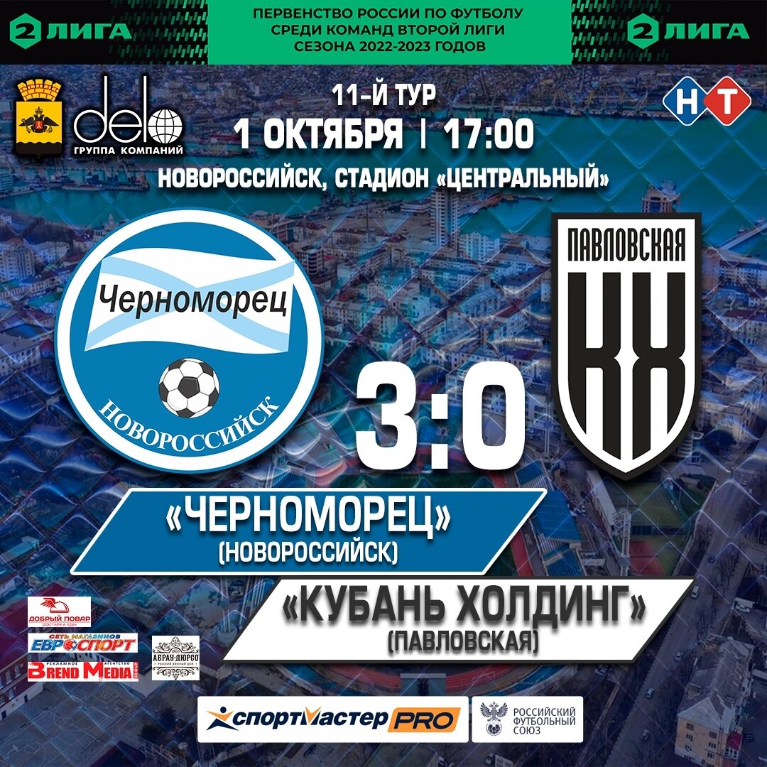 Черноморец не оставил шансов Кубань Холдинг Первенство России по футболу среди команд второй лиги сезона 2022-2023 годов 11 тур 01 октября 2022 года Черноморец - Кубань Холдинг 3 - 0 Фото vk.com/fcchernomorets.nvrsk Подписывайтесь и читайте vk.com/chevec ok.ru/chevec dzen.ru/chevec #ЮВеС #Новости #Новороссийск #ФКЧерноморец