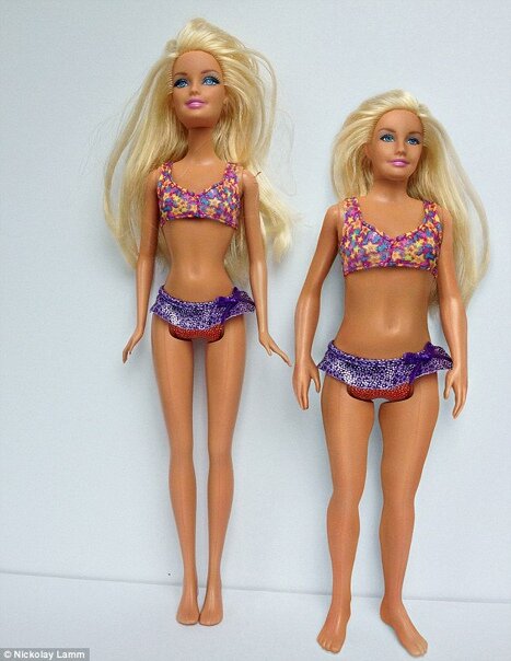 Кукла Барби, если бы она была обыкновенного человеческого роста, имела бы шею в два раза длиннее стандартной.