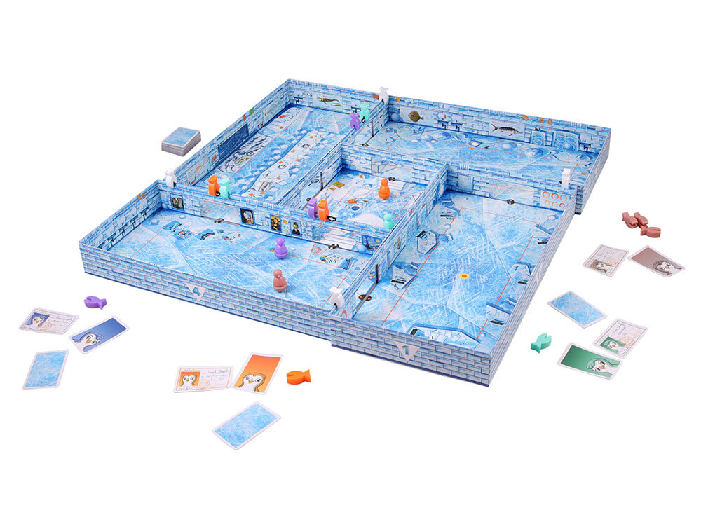 Чтобы в свой ход запустить пингвина в забег, вам нужно щелкнуть пальцами по фигурке-неваляшке. От щелчка фигурки скользят по картонным комнатам школы, проскакивают в дверные проходы и собирают победные очки. Дежурному же надо осалить всех остальных пингвинчиков.