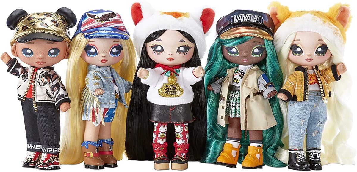 Новинка 2022 года – вторая яркая волна мягких куколок Na! Na! Na! Surprise, представляющих разных животных. В мини-серии представлены 4 девочки и один мальчик, как и в серии первой волны. Все игрушки выпускаются в прозрачной упаковке, поэтому выбрать понравившуюся куколку можно сразу. В комплекте с куколкой есть красивый комплект одежды, обуви и головной убор, а также вместительная сумочка в стиле персонажа для девочки. В сумочку легко поместятся стильные аксессуары или дополнительные игровые элементы для кукол. Эрика Фезертон (579281) с длинными русыми волосами и большими голубыми глазами одета в футболку и шорты с символикой американского флага, сверху джинсовка с белой бахромой, на ногах ковбойские сапожки, на голове кепка с изображением орла. В комплекте круглая сумочка черно-белого цвета, прошитая, в стиле птицы с клювом. Табита Некота (579267) с длинными волнистыми белыми волосами и карими глазами одета в белую футболку с буквенным принтом, джинсы, куртку на молнии и черные ботин