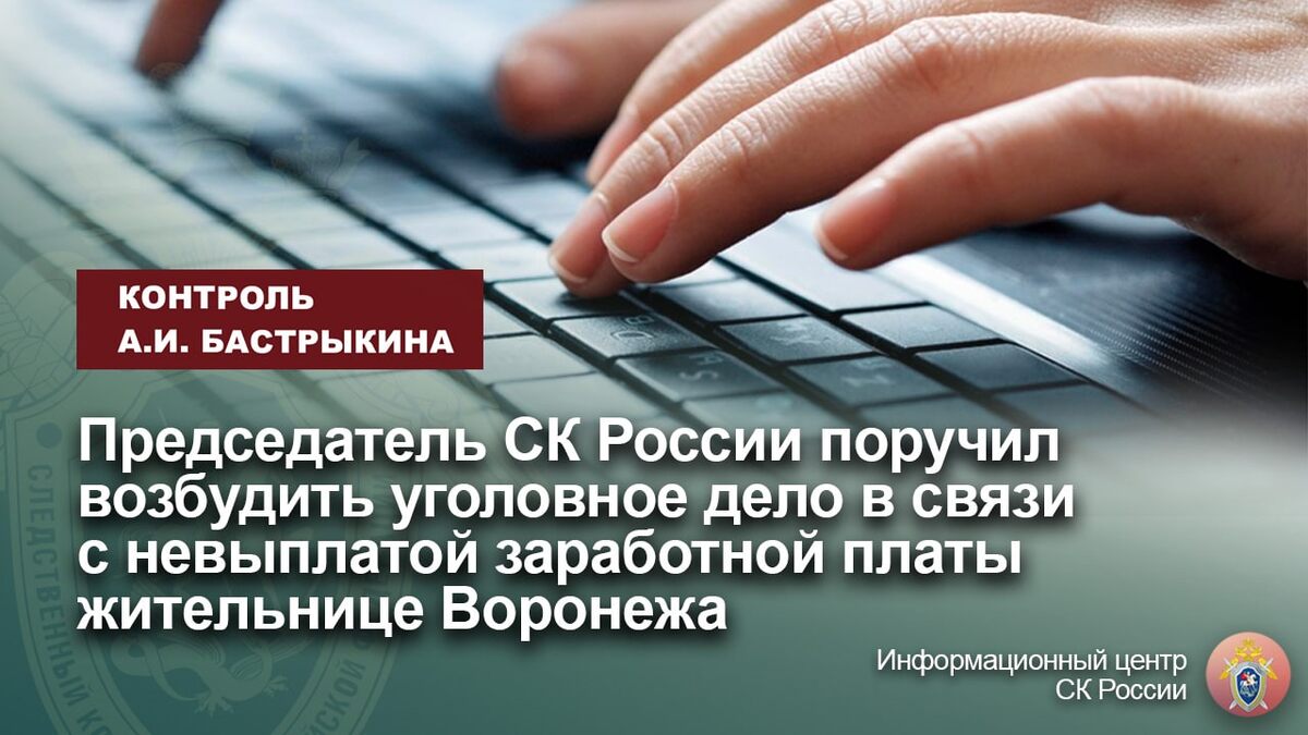 Председатель СК России поручил возбудить уголовное дело в связи с невыплатой заработной платы жительнице Воронежа
