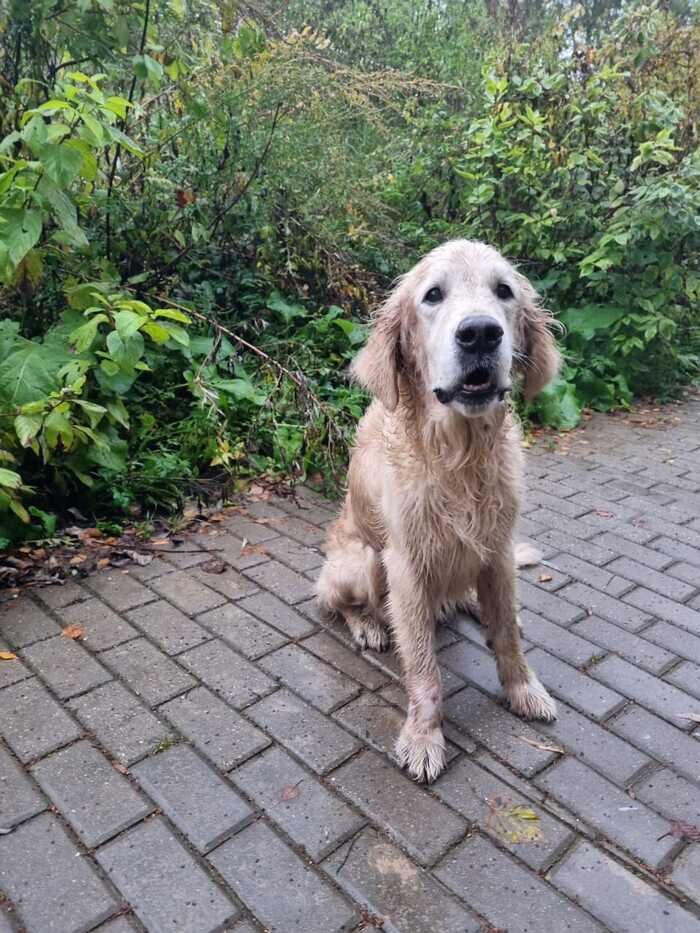 Пикабутяне, прошу вашей помощи! Гуляли в ландшафтном митинском парке (Московская область) и к нам прибился дружок. Золотистый ретривер, кобель, явно домашний. На месте хозяев не нашли. Сам дошел с нами до ветеринарной клиники, проверили чип (к сожалению чипа нет) и провели осмотр. На шее был черный ошейник от блох (именника или просто ошейника нет), пес породистый, клейма нет, не кастрирован. Ранена лапа - врач сказал что перелома нет, но явно травма от столкновения (машина или ударили). Псу где то 3-4 года. Худющий, ветеринар сказал по истощению дня 3 бродит. Отвели сейчас домой, отмыли, накормили. Собака очень добрая и отзывчивая.Слушается. Прошу вашей помощи, может тут найдется хозяин. Или кто поможет с передержкой или дальнейшим приютом. К сожалению долго у себя держать не сможем (своя собака жёстко охраняет территорию и не любит других собак дома). Сейчас у родителей, но они уезжают 17 октября.