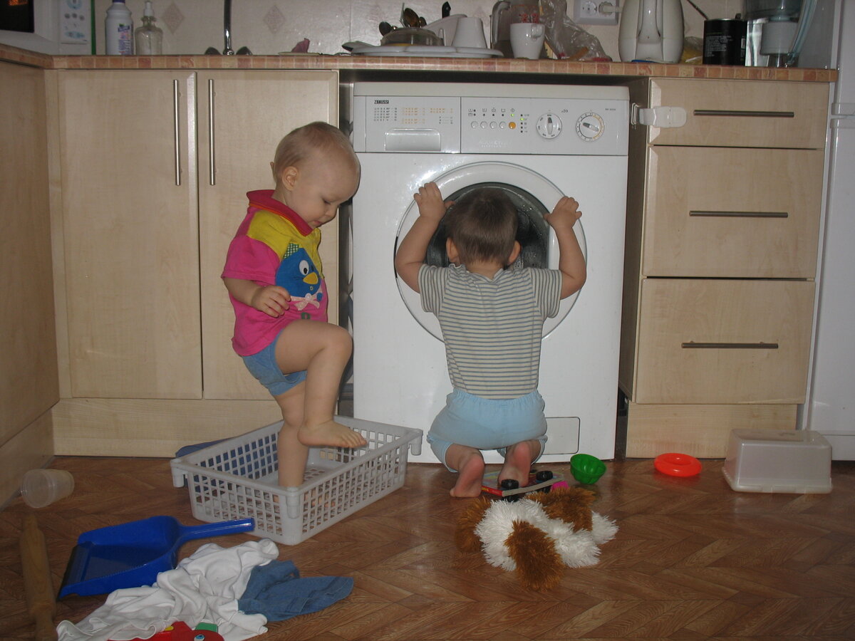 Предыдущая серия Болезни Не знаю, что бы мы делали, если б заболел кто-то серьезно. На мелочь мы внимание не обращали. Детишки сразу же обменялись соплями, да потом еще и не раз. Пару раз случались легкие температуры, просто в такие дни не было прогулок. Пару раз Ольга брала отгулы и мы вместе штурмовали поликлинику, офформляя карточку для сада - как и я, Ольга как манну небесную ждала осени. Санитария Были горшки. И дети ух условно знали и послушно сидели некоторое время. Иногда даже не зря, чаще вхолостую. Ковров в доме не было, а был запас трусов для максимки и штанов для макса, а так же швабра наготове. Бегала, подтирала бесконечные лужи :) Записаное в двойном количестве скидывалось в ведро с водой и к вечеру запускалась стиралка. Ежденевно. Вот такие опоссумы :) Детишкам только приходилось в обуви ходить, потому что наступить босой ногой на незамеченную лужу на линнолиуме - это гарантированное падение затылком. Купания Купала их тоже я. Во-первых, потому что в общежитии с этим б