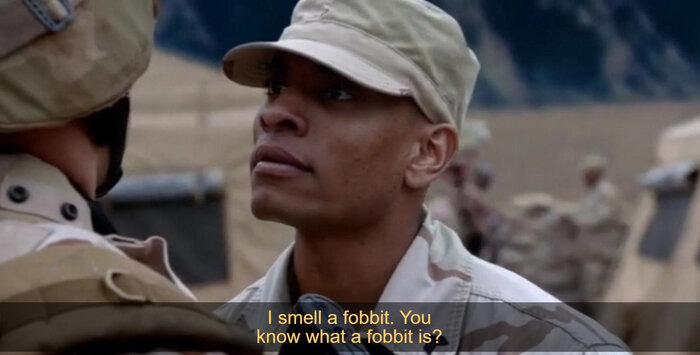 В сериале Orange is the New Black мне встретился термин FOBBIT. И его пояснение: FOBBIT - Солдат, который почти не покидает базу и не участвует в опасных вылазках. Слияние слов hobbit (хоббиты практически не покидают Шир) и FOB (Forward Operating Base). Хотите больше лексики военной тематики? Есть что почитать: Военная лексика из "Love, Death and Robots" (серии Suits, When the Yogurt Took Over, Shape-Shifters) Военная лексика из "Love, Death and Robots" (серии Lucky 13, Blindspot) Военная лексика из "Love, Death and Robots" (серии Ice Age, Alternate Histories, Secret War.