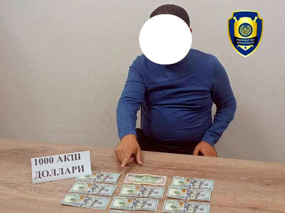 Главный юрисконсульт хокимията Яккасарайского района Ташкента задержан при получении 1,5 тысячи долларов