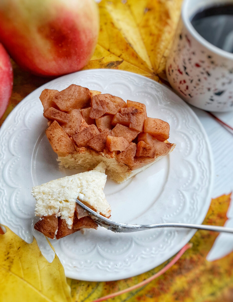 🍁КБЖУ на 100 г.: 146 ккал 11/4/15.6 Выход: 532 г. 🍁Ингредиенты: Творог 5% - 300 г. Яйцо куриное с0 - 1 шт. Мука рисовая - 30 г. Мука кукурузная - 30 г. Яблоки - 200 г. (Вес очищенных яблочек без кожуры и семян). Корица, кардамон, ванилин подсластитель. 🍁Приготовление: 1️⃣ 300 г. творога, одно яйцо, 30 г. кукурузной и 30 г. рисовой муки, подсластитель и чуточку ванилина перемешиваем вилочкой. 2️⃣ Яблоки чистим и нарезаем кубиками, добавляем корицу и кардамон. Перемешиваем. 3️⃣ На дно формы (16 см., силиконовая) укладываем яблочки, а сверху выкладываем и слегка утрамбовываем творожный слой. 4️⃣ Убираем в духовку на 35-40 минут и 180° 5️⃣ Готовый пирог немного остужаем, переворачиваем и вынимаем из формы, так чтобы яблочки остались сверху. Пирог - перевертыш готов, приятного аппетита 😊