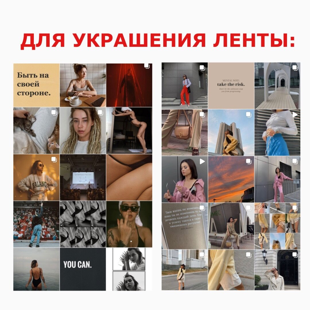 ⠀ В продолжение темы внедрения надписей в визуалсоциальных сетей, я Леханова Надежда хочу выделить 2 основных мотива использования текста в блоге: 1. Для украшения визуала, с целью добавления воздуха, креатива, и фокуса на определенный пост 2. Для навигации на странице эксперта. 3. Совмещая оба варианта ⠀ 1. ДЛЯ УКРАШЕНИЯ Использование текста в визуале ленты всегда было актуально, но стилистическая подача и оформление этого текста серьезно изменились. Если ваша задача использовать текст как украшение - обратите внимание на следующие моменты: ⠀ -Подстраивайте фото с текстом под общую стилистику ведения вашего блога -Используйте эти фото в качестве воздуха для вашей ленты -Старайтесь сделать цепляющую надпись, которая заинтересует открыть и прочитать пост 2. ДЛЯ НАВИГАЦИИ Чаще всего, к навигации с использованием текста, прибегают экспертные блогеры, которые позиционируют свой блог на своей экспертной теме. У таких блогов первичен полезный контент, аудитория приходит в перв