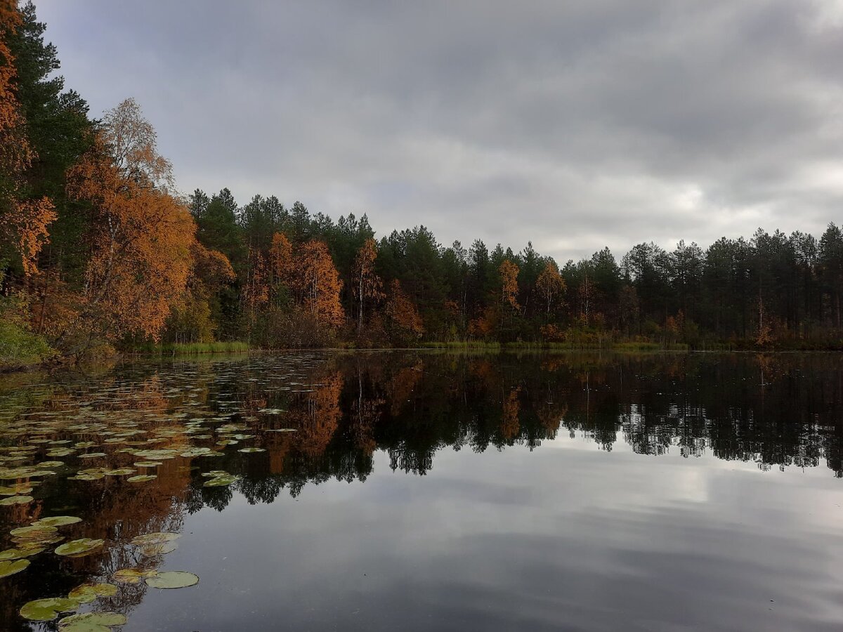 Осень, понедельник, у меня вынужденный выходной, решил не надолго диван променять на рыбалку.😉 Ранее у меня поломался якорь, и потому вместо большой реки, поехал на лесное озеро, покидать приманки в поисках травяночки. Озеро встретило хмурой тишиной. Но одиночеством недолго наслаждался, не успел я накачать лодку, как подъехал еще один рыбак. Так и поехали: я в одну сторону по периметру озера, он в другую, т.е. на встречу друг другу. Озеро мне знакомое, я тщательно облавливаю все перспективные места и даже не перспективные, меняю приманки: большая вертушка, маленькая вертушка, крупная резина, мелкая резина, колебалка, крэнк, минноу...- все тщетно. Озеро-мертвое. Проехал по периметру все озеро, встретил мужика- тот тоже по нолям, приехал еще один , тот вообще на моторе начал троллить по периметру... А это понедельник, боюсь представить, что было в выходные. Хотя судя по записям на форуме, те, кто ловили так же ничего не нашли, вот и я щуки сегодня не нашел. Озеро как летом, мутное, в во