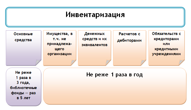 - инвентаризировать основные средства один раз в 3 года, а библиотечные фонды — один раз в 5 лет;