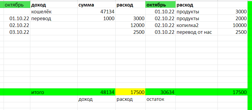 Доброе утро, мои дорогие подписчики и просто читатели канала. Сегодня проспала,Не знаю, кто виноват, дождь или тепло, или магнитные бури, но факт есть факт. Поэтому пишу и спешу( мне это не нравится), но иначе буду дома только вечером. А вечером буду я, а связь может и не появиться. Итоги бюджета за первые дни октября. Уже прошло три дня. Про первый день я писала немного, был и доход и расход. А вот 2 октября мы с сыном ездили в район, купили продукты на неделю( так думаю, что хватит) и заехали к дочери. Привезли и сало, и купили гостинцы, и посидели чайку попили. Потом сын ещё купил себе кроссовки, да домой поехали. Так что 2 октября доходов не было, а расход был только на продукты( гостинцы считаю как продукты) и в копилку перевела 10000 рублей.Итого 2 октября потратили 12000 рублей. А вчера ( 3 октября) дохода не было, но были виртуальные траты. Вчера у моего единственного племянника было день рождения. И я так рада, что есть у меня возможность перевести немного денег. Перевела ему