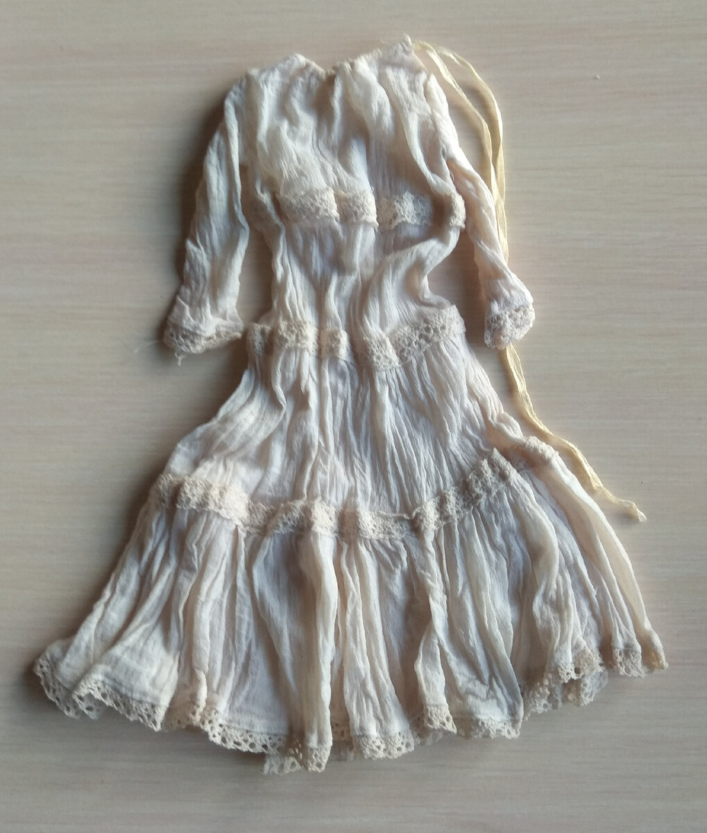 Сейчас очень популярны изделия в винтажном стиле и мастера часто прибегают к приёму состаривания изделий для придания им налёта старины. Особенно это популярно у мишек тедди, но и в куклах тоже встречается не редко. Так как же можно состарить кукольный наряд? Существует несколько способов. Вы можете использовать один из них, а можете использовать все сразу. Выбирайте наилучший вариант для создания идеального образа вашего изделия. Самый простой способ - это тонирование одежды чаем или кофе это позволит придать пожелтевший вид белым тканям и кружевам, получить естественные разводы и пятна и ваш наряд уже не будет выглядеть новеньким. Если вы хотите пойти дальше, то можно создать искусственные потёртости, просто потерев ткань наждачкой в нужных местах. Особенно хорошо этот метод работает с джинсовыми тканями, создавая естественные потёртости и даже дырки. Если вы хотите придать изделиям больше объёма, то дополнительно к тонированию чаем можно добавить более тёмные акценты краской. Для эт