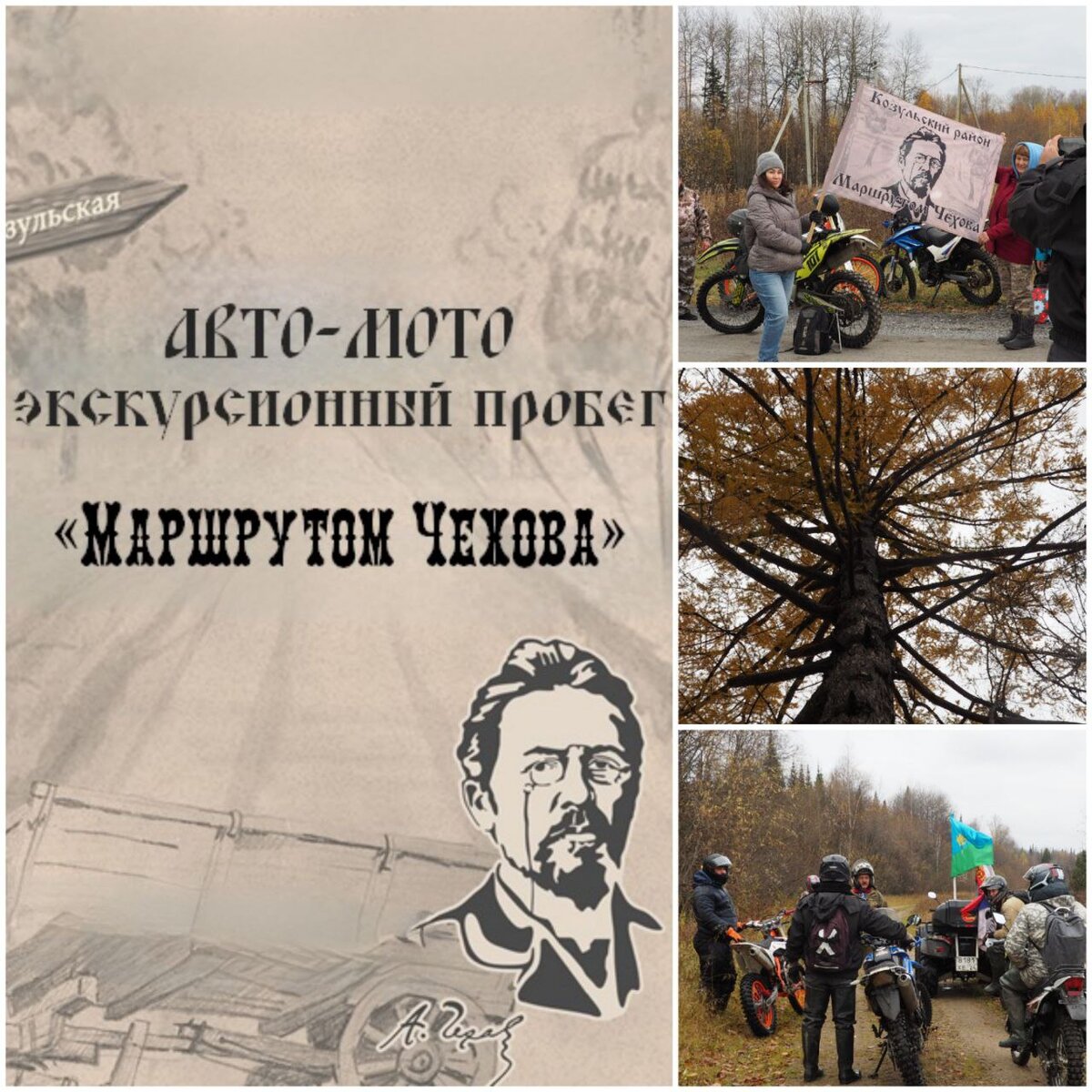Впервые в Козульском районе прошел необычный историко-экстремальный авто-мото пробег «Маршрутом Чехова», организованный Муниципальным бюджетным учреждением культуры «Централизованная библиотечная система Козульского района» совместно с доктором экономических наук, профессором кафедры международной и управленческой экономики СФУ, Почетным работником высшего образования Бутовой Татьяной Георгиевной. 2 октября участники пробега – мотоциклисты и квадрациклисты преодолели исторический маршрут. Колонну возглавил Стреж Валерий Юрьевич, на «боевом коне» которого символично развивался главный атрибут пробега – флаг с портретом Антона Павловича Чехова. Маршрут был наполнен не только ямами и ухабами, но и интересными локациями. На первой остановке у верстового столба, который с незапамятных времен являлся обязательным атрибутом на всех почтовых маршрутах и важным ориентиром для путешественников, участники получили карты с маршрутом движения по старому Московско-Сибирскому тракту, а краевед Вла