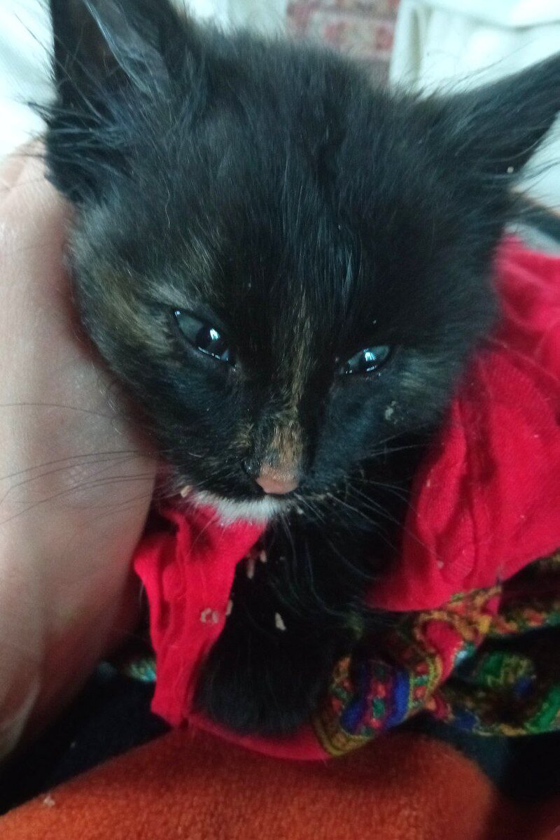 Продолжение поста «3.5 часа назад мужчина нашел котенка в лесу, напоил сгущёнными молоком с водой и попросил помочь. Девочка очень слабая»