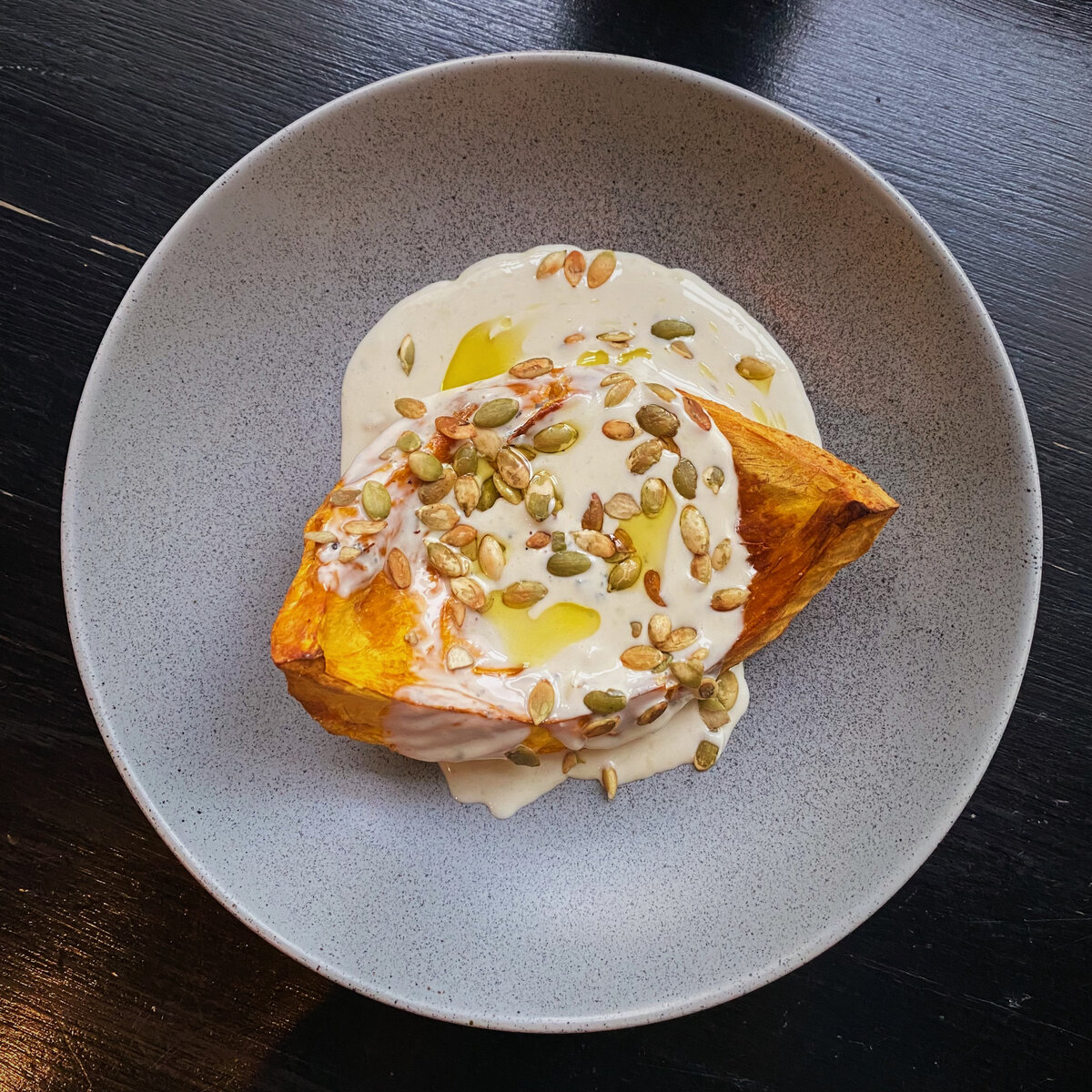 Такое сочетание точно не оставит вас равнодушным - даже я был в восторге, хоть и не люблю тыкву 😂 Что нам понадобится: - Тыква очищенная - 250/300 г (одним куском) - Оливковое масло, пару столовых ложек - Соль/перец, по вкусу - Белое вино (сухое или полу сухое), 30 мл - Горгонзола (или любой сыр с голубой плесенью, только мягкий), 50 г - Сливки 33% жирности, 100 г - Семя тыквы очищенное и обжаренное, 1 ст л Приготовление: - Тыкву кладём на противень с пергаментом. - Солим, перчим и сбрызгиваем оливковым маслом. - Отправляем в духовку на 20 минут при 180 градусах с конвекцией. - В сотейник наливаем белое вино, упариваем в два раза. - Туда же добавляем сыр. Когда он расплавится, заливаем сливки и упариваем, постоянно помешивая, пока соус не загустеет. - Запеченную тыкву выкладываем на тарелку, сверху поливаем соусом из голубого сыра, посыпаем обжаренными тыквенными семечками и поливаем оливковым маслом.