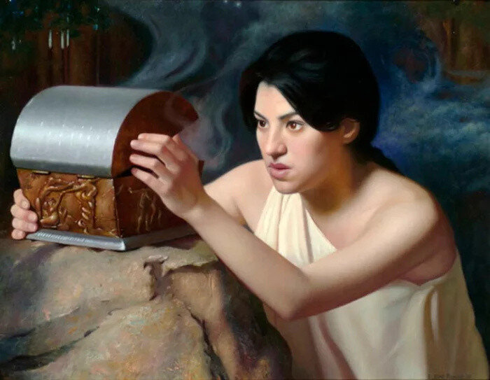 В древнегреческих мифах первая женщина на земле. Афина дала ей душу, а Зевс дал ей любопытство в подарок. Когда Пандора открыла из любопытства чудо - ларец, беды и страхи растворились , и осталась на дне - Надежда.