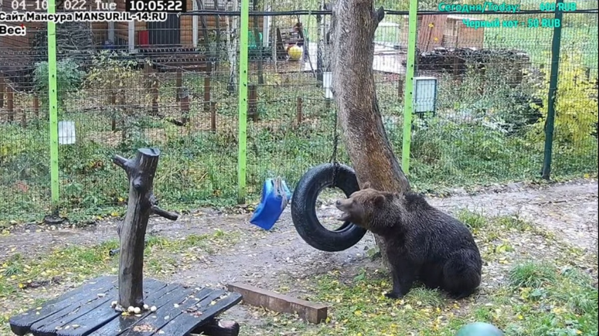 Медведь Мансур - 3 камеры в прямом эфире - знаменитый медведь в России, которого спас летчик маленьким медвежонком и он жил на аэродроме пока не вырос до крупных размеров.