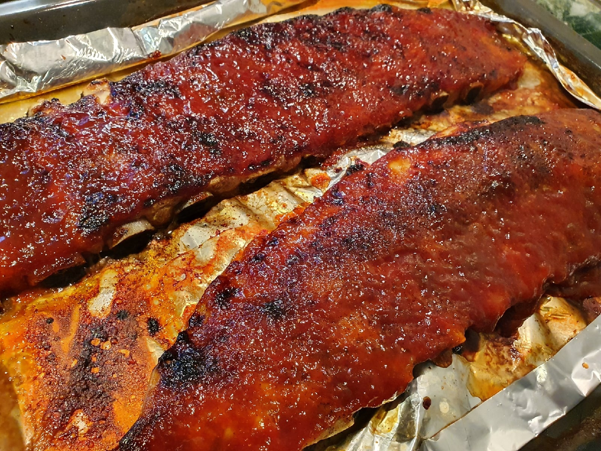 Мне такой вариант готовки очень нравится, потому что можно поставить еду в духовку и несколько часов заниматься своими делами, а не следить за духовкой. Нам понадобится: — свиные ребра — соль, перец — соус барбекю — фольга или делаем соус сами. Для него понадобится: — кетчуп — соевый соус — острый соус, на пример, шрирача — мед — сухой чеснок Приготовление: 1. Все очень просто :) берем наши ребрышки и укладываем их на фольгу. Перчим, солим. 2. Накрываем ребрышки вторым листом фольги. Хорошо запечатываем края. Делаем несколько дырок в фольге и отправляем их в духовку на 120 градусов примерно на 4 часа. Если вы их оставите чуть дольше, то на итоговый результат это сильно не повлияет. Просто мясо станет чуть мягче. 3. Через 4 часа ребрышки будут вот такие. Они уже приготовились, но выглядят не очень красивыми. 4. Теперь мы будем делат