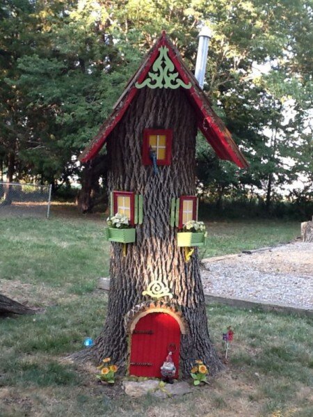 Маленький уютный домик в самой глубине сада. Там живет садовый гном или другое мифическое существо. Это для детей? Вы уверены? Мода на садовые миниатюры в виде домиков захватила мир. Каких только сказочных избушек не делают владельцы участков! В пнях и на деревьях, среди камней и трав. Маленьким выдуманным соседям устраивают огороды и цветники, спальни и террасы. На первый взгляд, такие домики - развлечение, шутка. Часто они появляются в семьях, где есть дети. Но, если внимательно присмотреться ко всем деталям и кое-что почитать, откроются очень интересные вещи. Самый простой способ соорудить миниатюрный садовый домик - сделать его из пня старого дерева или из живого взрослого дерева. Например, такой: Крошечное жилье со всему атрибутами комфортной жизни. В комнате горит свет, каменные ступени ведут наверх, скворечник, скамейка, балкончик, плющ, деревянная мебель - все на месте. Хозяина нет дома, видимо, припозднился. А кто, собственно говоря, здесь обитает? Для кого построен домик? С