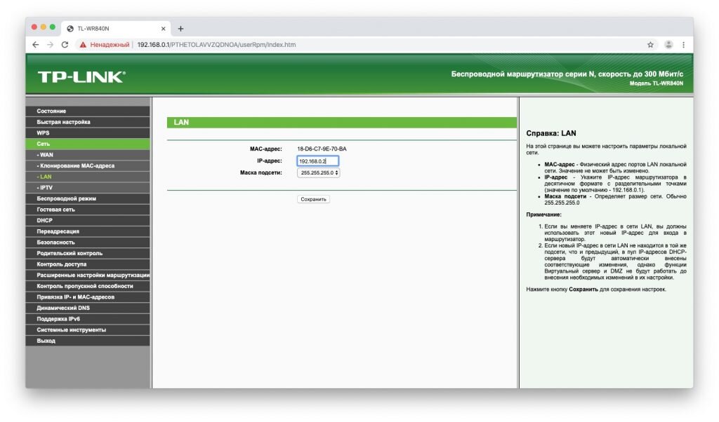 Вариант 1. Превращаем роутер в проводную точку доступа Это лучший способ, если вам нужна хорошая скорость соединения и вы не против использования кабеля. Итак, вы зашли в настройки старого роутера. В зависимости от модели и производителя названия пунктов могут отличатся, но в целом они схожи. Тут нужно сделать следующие три вещи. Зайдите в настройки LAN и задайте маршрутизатору новый IP‑адрес. Он должен быть таким же, как у основного роутера, но с другой цифрой на конце. Например, если у основного маршрутизатора адрес 192.168.0.1, то у старого должен быть 192.168.0.2. Посмотреть адреса можно в документации или на наклейке на роутере. Сохраните изменения и подождите, пока устройство перезагрузится. Теперь для того, чтобы зайти в его настройки, понадобится вводить новый адрес. Снова откройте настройки, зайдите в параметры Wi‑Fi и укажите там название вашей новой беспроводной сети и пароль к ней. Удобнее всего давать похожие имена, чтобы не путаться. Например, если основной роутер разд