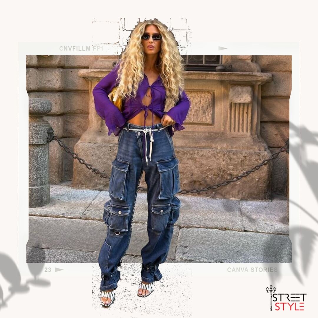 Вот несколько моих любимых трендов, которые, надеюсь, понравятся и вам: джинсы карго, джинсовые брюки с защипами и высокой посадкой, джинсы с широкими штанинами и большими карманами и прямые джинсы оверсайз синего цвета.